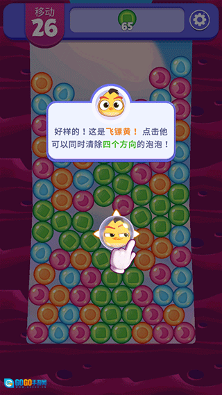 2、上方带有数量标识和颜色的泡泡是玩家需要完成的任务目标。而下方的小鸟则是具有强大效果的道具。