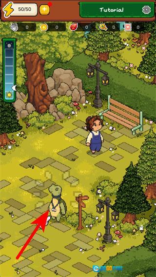 进入游戏界面后,操控角色移动到乌龟NPC的位置,触发互动以开启剧情流程,这是推进游戏进程的关键步骤。
