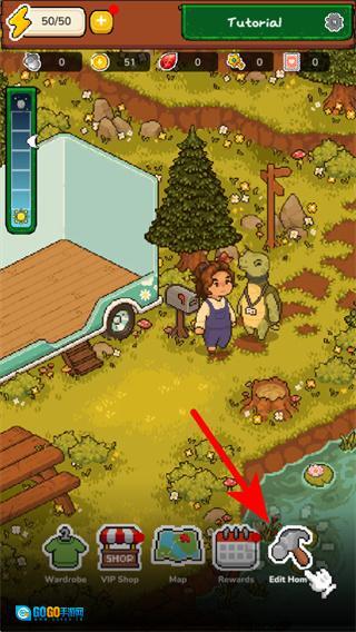 4、根据箭头指示点击锤子图标,了解该道具的具体功能,利用这一系统来获取游戏资源,从而推动玩法进程。