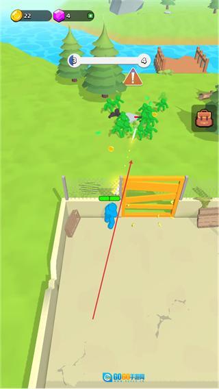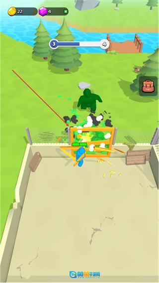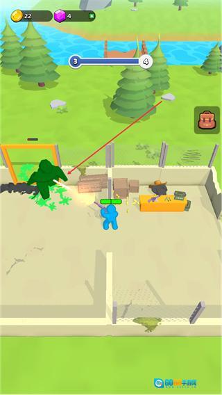 3、攻击绿色怪物,清除障碍,收集场景中的资源,推动关卡进度。