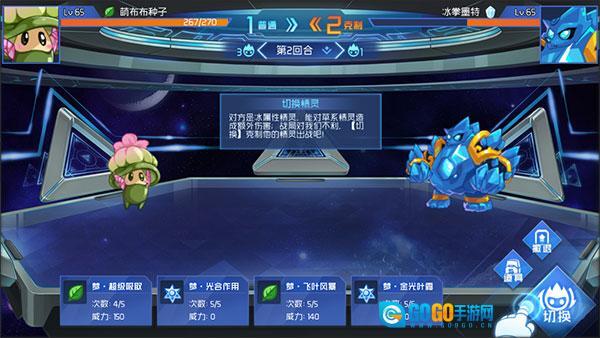 4、精灵之间存在属性相生相克的关系,你可以通过点击切换精灵来进行针对性应对,从而更好地击败对手。