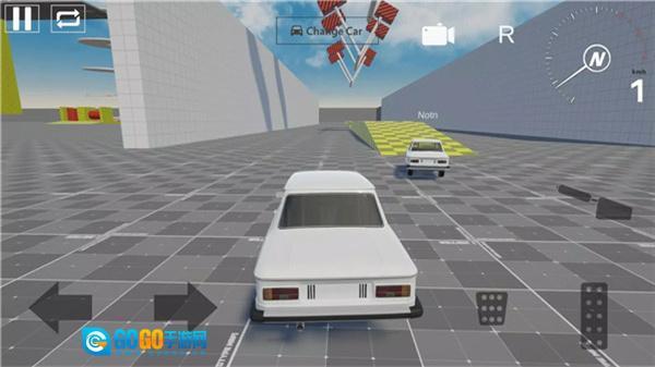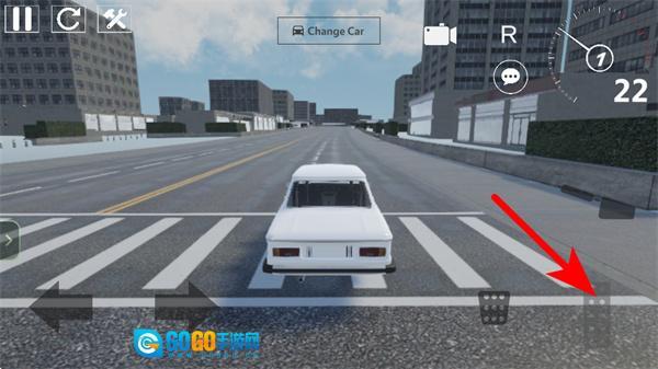 2、游戏中依照箭头指引,点击右侧的加速按钮控制车辆前进,同时留意赛道布局,确保车辆行驶在道路范围内。