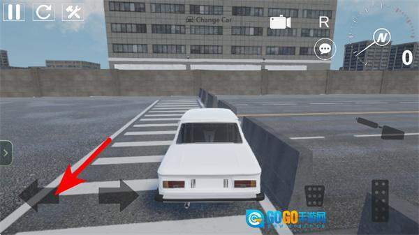 3、紧跟红色箭头指引,点击左侧的方向按钮调整车辆行驶方向,躲避赛道障碍,保持车辆的平稳行驶。
