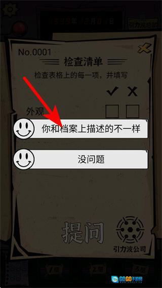 2、在游戏里按照箭头的指引,于检查清单的外观类别中,选择与档案描述不一致的选项,以此完成该项的检查判定。