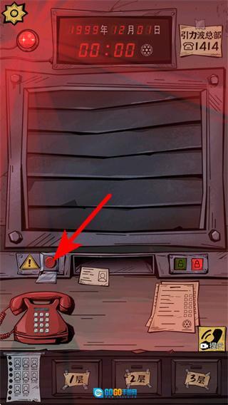 4、按照箭头所指的方向,点击界面上的警示按钮,以此完成当前环节的交互操作,进而开启后续的剧情关卡环节。