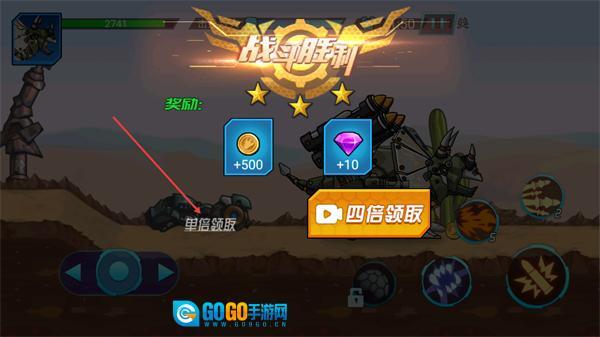 4、完成关卡并取得战斗胜利后,能够领取相应的奖励;要是希望获取更多资源,可以挑选对应倍率的领取方式,以此来获得金币和钻石。