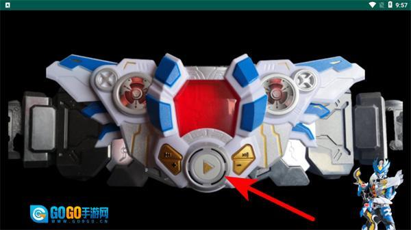 3、紧跟红色箭头指引,点击腰带的播放按钮触发变身流程,完成角色的变身操作,解锁对应形态的能力。