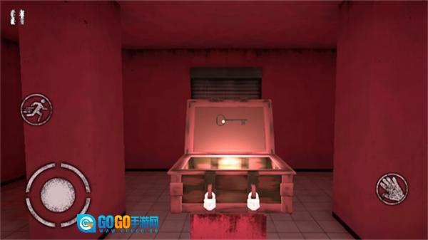 3、找到带锁的箱子,用之前收集到的钥匙,点击手形按钮和箱子互动,解锁箱子后就能拿到里面的逃生道具了。