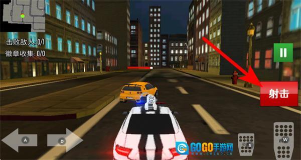 3、遇到目标车辆时,点击射击按钮对其发起攻击,完成击败敌人的任务目标。