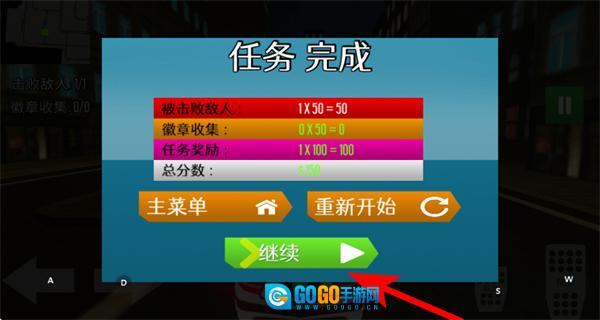 4、任务完成后,点击继续按钮,获取当前关卡的奖励并进入下一个巡逻任务。