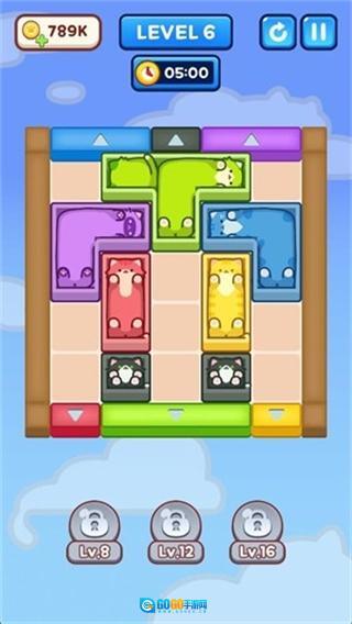 2、可以按照颜色分组来推动猫咪移动,先把一组相同颜色的猫咪集中引导到指定位置,之后再处理其他颜色的猫咪,这样能提高闯关的效率。
