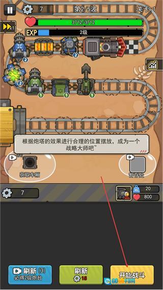 1、在第二波战斗开始前,把炮塔布置到合适的位置,点击开始战斗,准备迎接敌人的进攻。