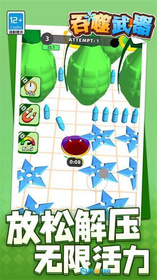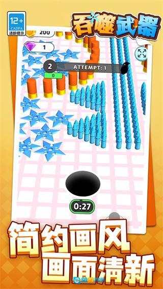 吞噬武器是一款吞噬进化类的休闲益智类作品,核心围绕黑洞吞噬与射击对战展开,控制黑洞自由移动,吞噬各类武器转化为自身战力,持续提升枪械的威力与射击精准度,进而射击战场上的敌人,画面制作精美细腻,既带来刺激的对战体验,又不失休闲乐趣,让玩家在轻松氛围中感受吞噬进化与射击的双重快感。