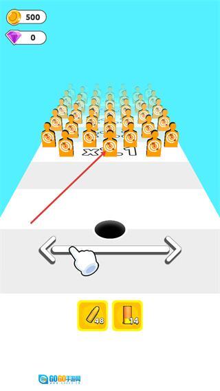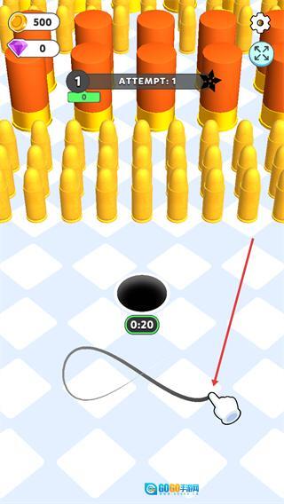 4、拖动下方的左右滑动条,控制黑洞的移动方向,使用之前收集的武器攻击前方标靶,完成对应收集任务推进关卡。