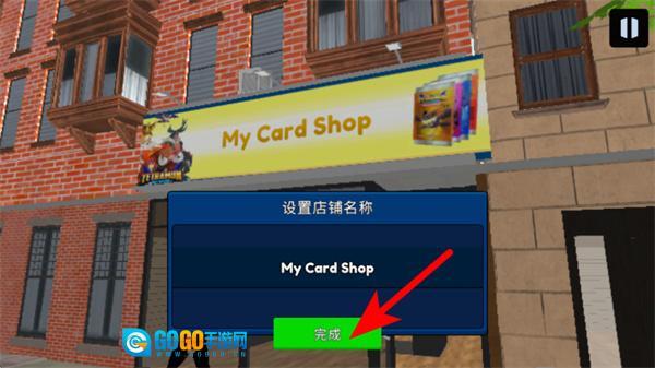 3、按照红色箭头的指引操作,点击完成按钮确认店铺名称,以此完成店铺的初始设置,迈出经营流程的第一步。