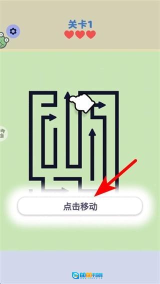 进入关卡1界面后,需点击移动按钮启动迷宫探索,这是游戏的关键操作,完成后角色才能开始在迷宫中移动。