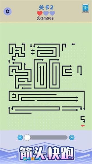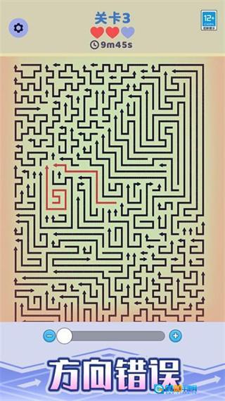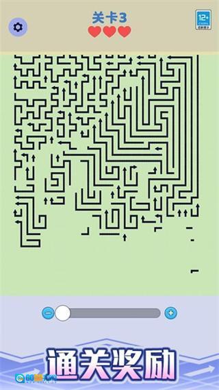 2、游戏过程中,请按照箭头的指引,顺着迷宫里箭头所指的方向移动角色,朝着迷宫出口的目标不断前进。
