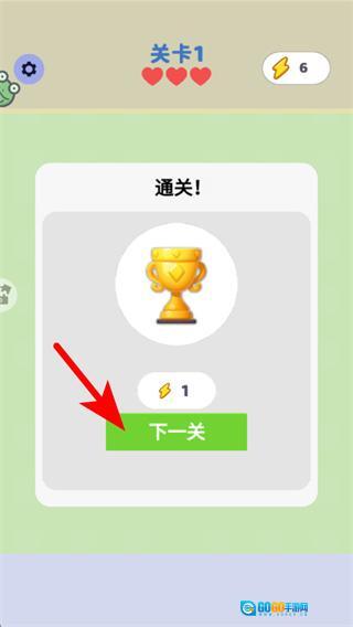 3、完成当前关卡后,按照红色箭头的提示操作,点击下一关按钮进入关卡2,继续进行迷宫挑战。