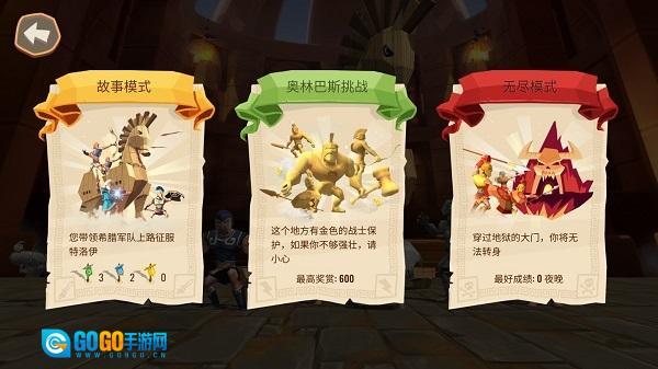 目前,特洛伊战争游戏里有故事模式、奥林巴斯挑战和无尽模式三种玩法,不同模式下可选的兵种属性各有差异。要是想快速结束对局,就得提升兵种能力,或者给兵种配上神奇装备与技能,让战斗节奏更快。如果你之前玩过《火柴人战争遗产》,那上手这款游戏会特别容易。