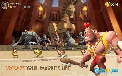 游戏对这场战争进行了模拟。您率领希腊军队攻克特洛伊,成功夺回海伦。在穿越各个领土的过程中,您会获得更多种类的部队,还能借助硬币为神灵配备神器来提升战力。每场战斗里,您都得兼顾食物供给与部队训练,既可以把特洛伊木马当作防御堡垒,也能运用魔法书里的法术摧毁敌人的塔楼。