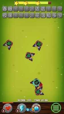 2.桌面上会随机出现若干汉字,这些汉字处于持续移动状态,玩家需迅速点击它们并填入对应的空格内。
