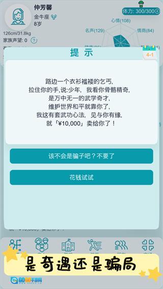 以简洁直观的文字为载体,清晰呈现人生各个阶段的关键事件与发展变化。通过文字描述构建场景与情感共鸣,让玩家专注于人生决策,沉浸感受不同人生的悲欢离合。