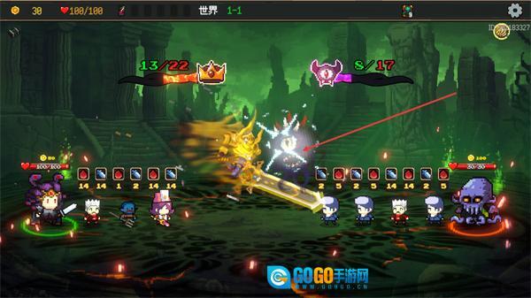 4、进入1-1战斗界面后,角色与手牌召唤的单位会协同攻击敌方单位,以此推进战斗进度,最终达成通关目标。