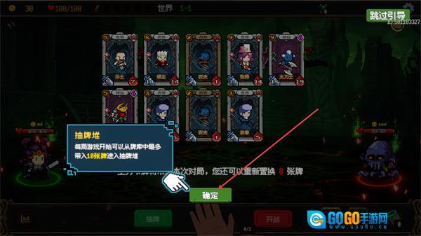 3、在对局准备界面,阅读完抽牌堆的规则提示后,点击确定按钮关闭提示,你可以选择通过抽牌来补充手牌,也可以直接点击开战按钮进入战斗环节。