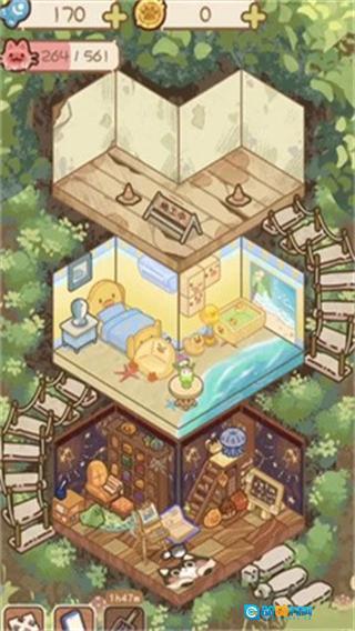 可以从第一层开始逐步解锁到第九层的猫塔,每一层都配备独立的剧情和功能;完成升级后,就能吸引猫咪前来入住,借助猫咪的助力开展经营活动,进而解锁更多的扩展空间。