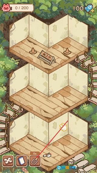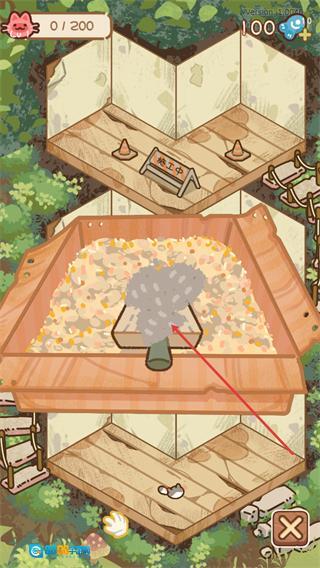 进入游戏后先观察分层场景,熟悉当前场景的布局,点击左下角的猫砂铲,就能按照指引操作工具来推进游戏进程。