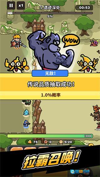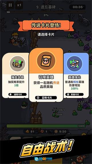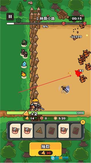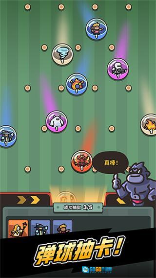 2、英雄通过攻击敌人获取金币,以此提升关卡进度,进而继续抽取卡牌来增强自身战力。