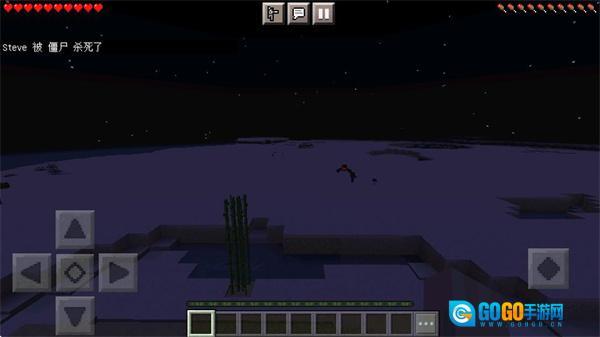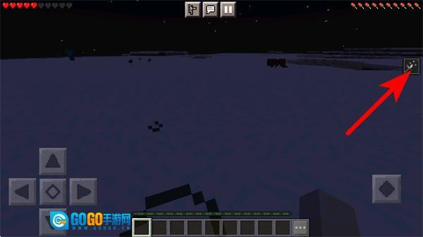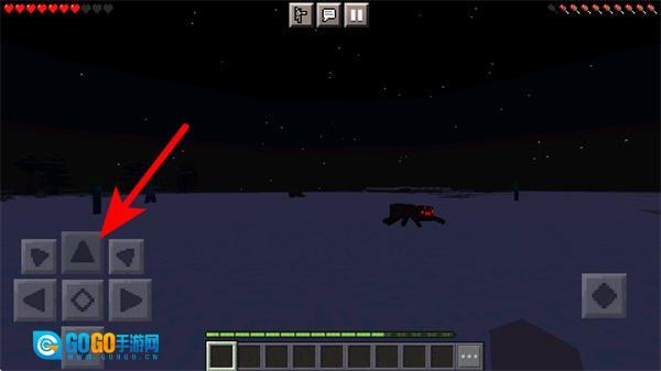 2、进入游戏后,用左侧的方向按钮的前进键操控角色移动,调整位置来探索场景、躲避夜间出现的怪物。