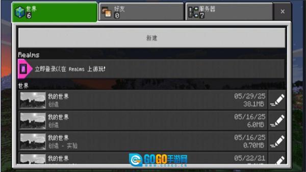 1、进入我的世界后,点击界面中的游戏选项,就能进入游戏的生存或者创造模式,开启冒险流程。