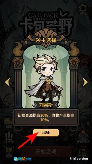 2、在领主选择的界面,我们选定目标领主后,点击出征的按钮进入关卡。