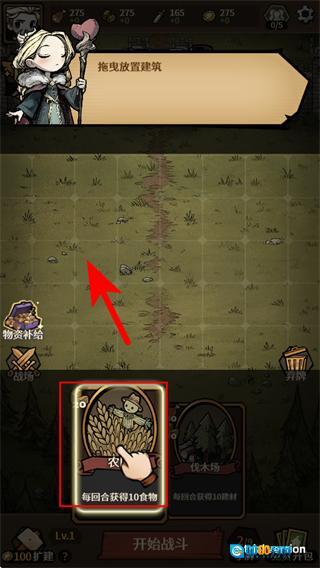 4、将选中的卡牌拖动到上方的区域,完成建筑放置,获取对应的资源收益。