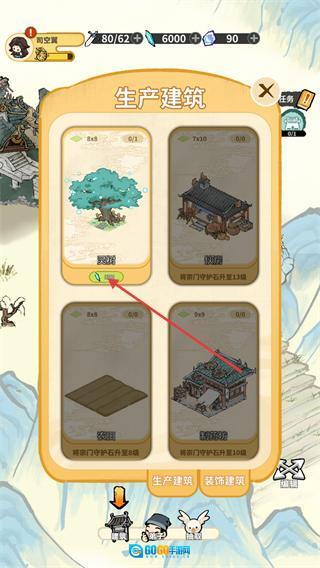 1、处于宗门主场景时,点击底部对应的建筑按钮,进入生产建筑界面,这是解锁生产设施的关键步骤,可助力宗门资源获取。