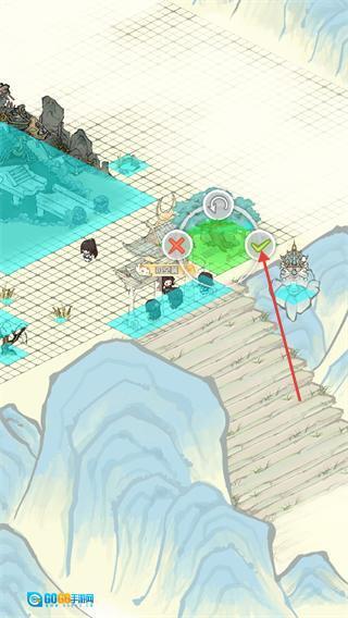 4、进入建筑布局的网格区域,选定合适位置后,点击界面中的对勾按钮,完成灵树的建造位置确认与放置。