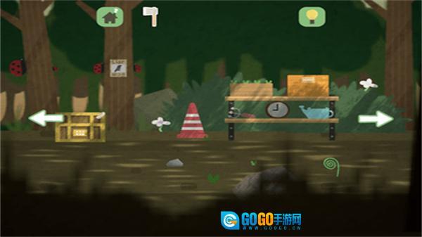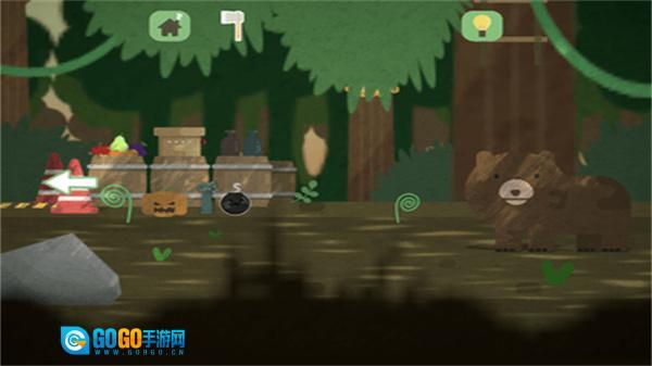 探索过程中留意树林里的道具,部分道具能为小熊提供帮助,助力安全找到回家的出口,降低闯关难度。