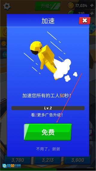 3、点击“免费开启加速”,可使工人提速50秒,从而快速获取更多资源。