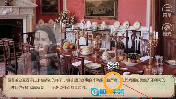 3、长按屏幕任意位置即可进入快进模式,此模式能加快当前剧情的推进速度,同时让玩家了解这段涉及家规的剧情内容,以便衔接后续的游戏情节。