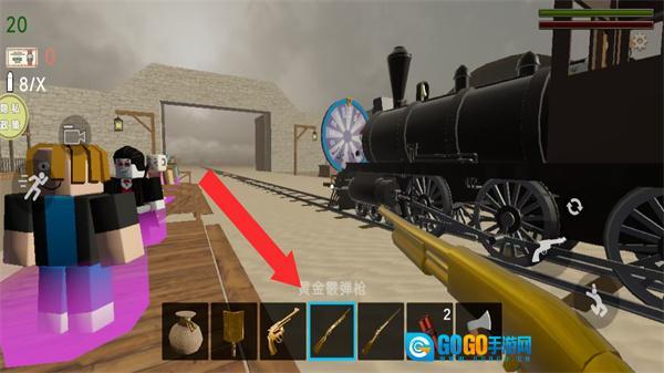 4、遇到敌人时,使用当前武器攻击,同时可切换更强力的武器如黄金弹弓枪提升输出。