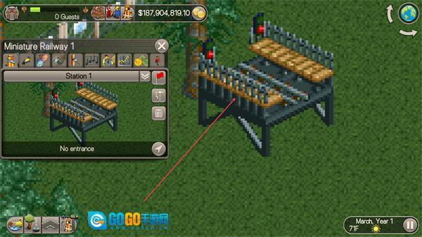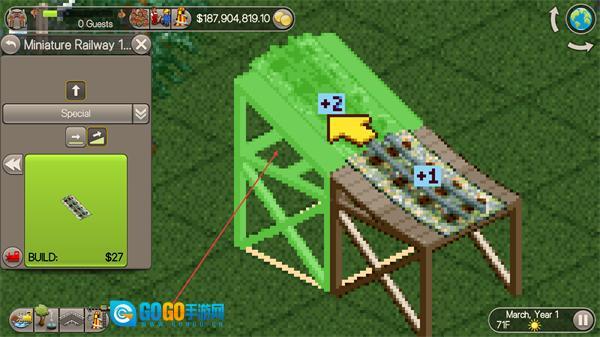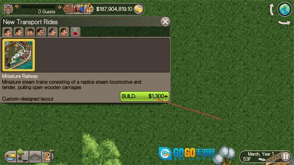 1、在NewTransportRides界面选择MiniatureRailway,点击BUILD花费$1300+建造该设施。