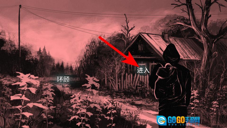 4、在场景界面中,点击进入按钮,即可进入目标建筑如小屋,探索区域推进剧情。