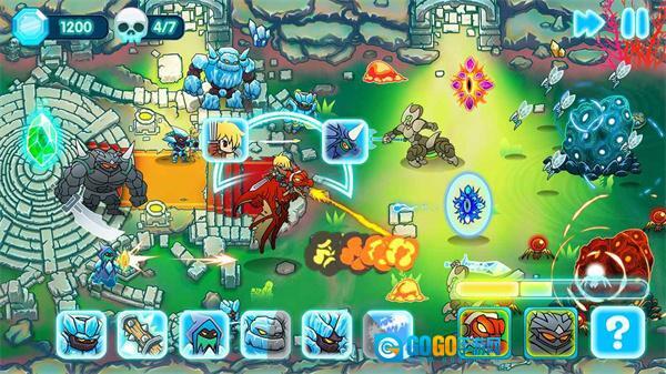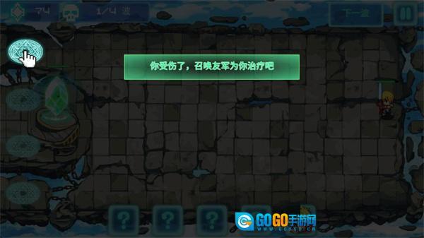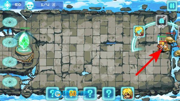 触碰屏幕进入游戏,从第一关开始挑战,初始可选1级英雄,光剑士、独角骑士、飞龙战士、弓手,积累经验值升级英雄;左下角雇佣英雄参战,右下角释放技能,左侧守护水晶、右侧操控主角,瞄准目标集火攻击,灵活切换英雄应对战局。