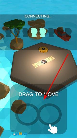 2、通过拖动操作控制陀螺在场地内移动,调整位置靠近其他陀螺对手。