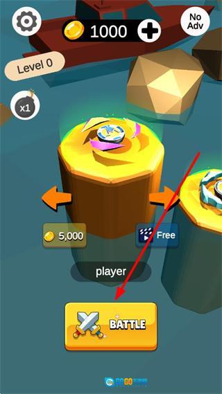 1、进入游戏界面后,点击BATTLE按钮,在选择陀螺界面确定出场的陀螺后,进入对战场景。
