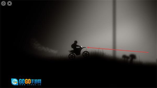 3、在昏暗的游戏场景中操控摩托前进,注意观察周围环境避开潜在障碍,以此持续推进当前关卡的进程。