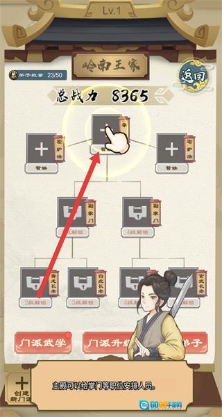 2、主殿建造完成后,点击场景中的主殿建筑,进入主殿功能界面,开启门派职位管理相关操作。