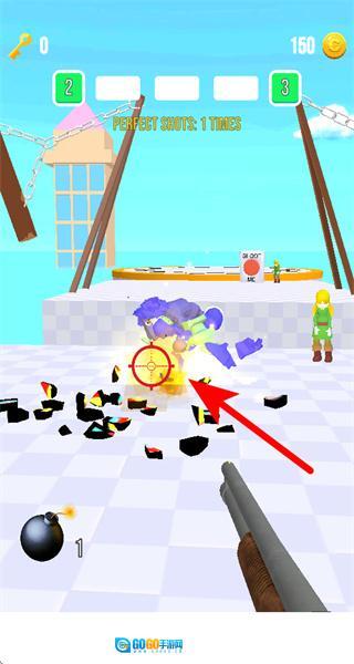 4、完成当前目标后,继续瞄准新的靶心区域射击,积累完美射击次数,获取更多金币奖励。