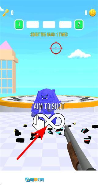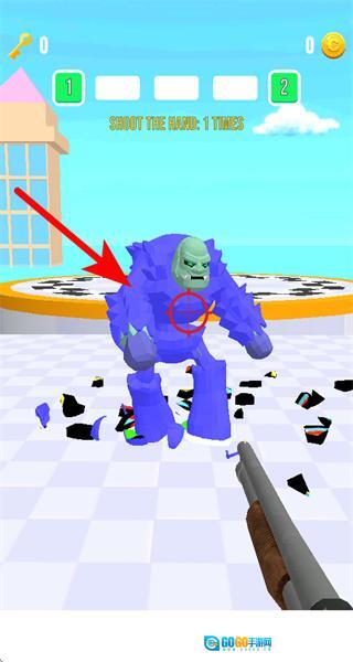 3、瞄准怪物身上的红色靶心区域射击,命中后可完成射击怪物的任务要求,推进关卡进度。